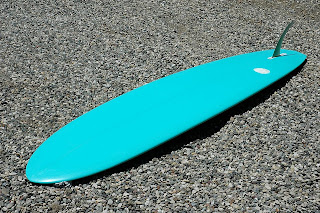 This one is an 8'6 derived from about 12 different templates of mine, with a low and pretty flat rocker and a pulled back wide-point compared to my other boards. Bellied out but not outrageously so, and an overall thinner foil than most trans-style boards (you know what I'm talking about...). What came out is really cool to me, a pretty solid vee off the tail, and it took all of my not to foil that sucker out, but I didn't!